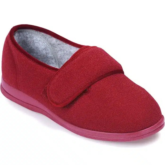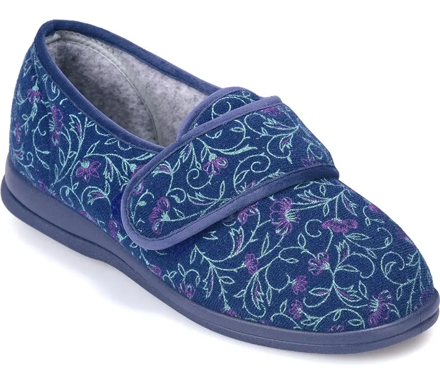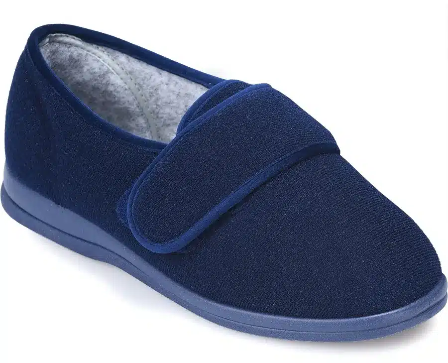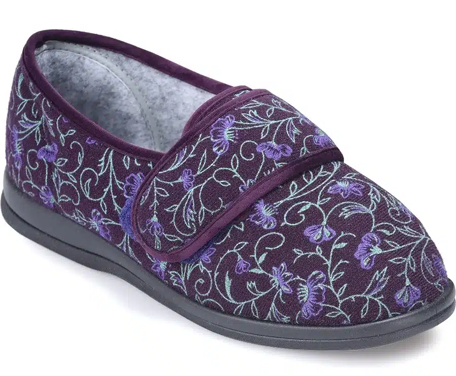 Our best selling slipper is soft, yet supportive. With the underfoot cushioning and support of a house shoe, it has a broad toe shape and is seam free at the front making it ideal for problem or sensitive toes.