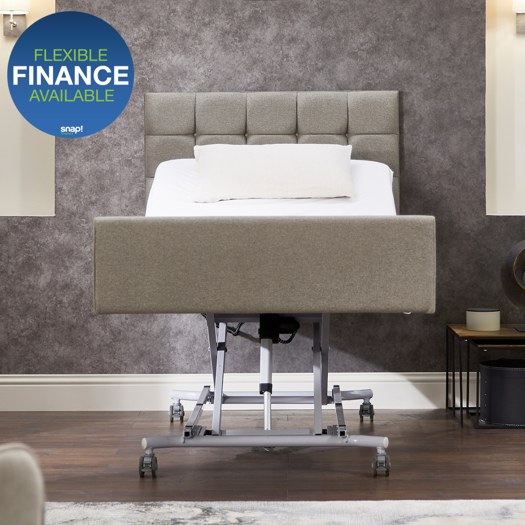 The Signature Comfort is a popular home care bed that has all the functionality you would expect from a hospital bed whilst being cleverly styled to look homely and unobtrusive. The whole bed raises and lowers and has an adjustable back rest for sitting up in bed and leg rest for elevating your knees or feet. The Signature Comfort is available in three sizes and you can choose your headboard style, material and colour.