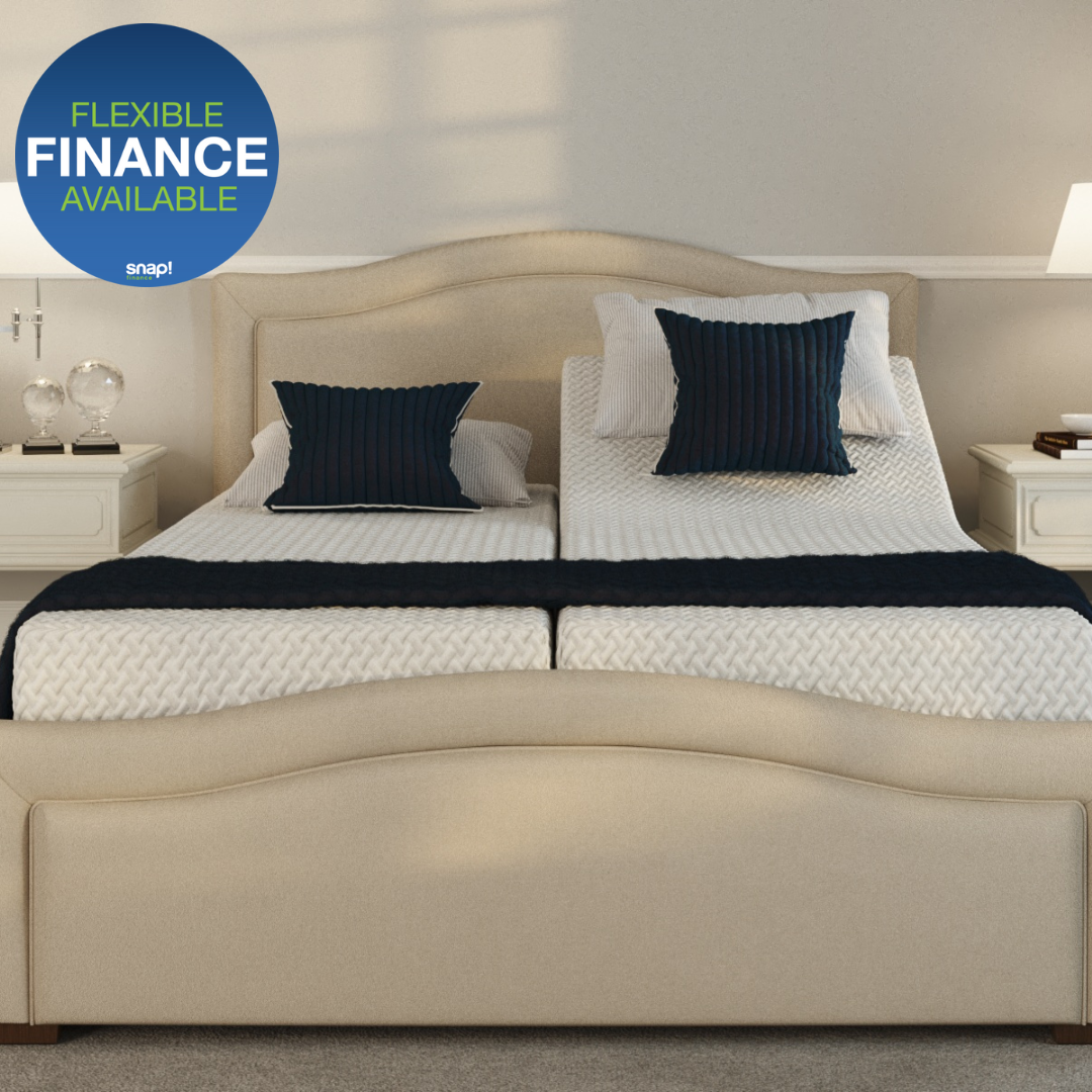 The Edel sports a matching detailed head and foot board giving it a grand, plush appearance. Comes as standard with back/leg adjustment, wireless control and zero gravity mode.