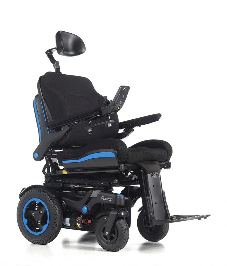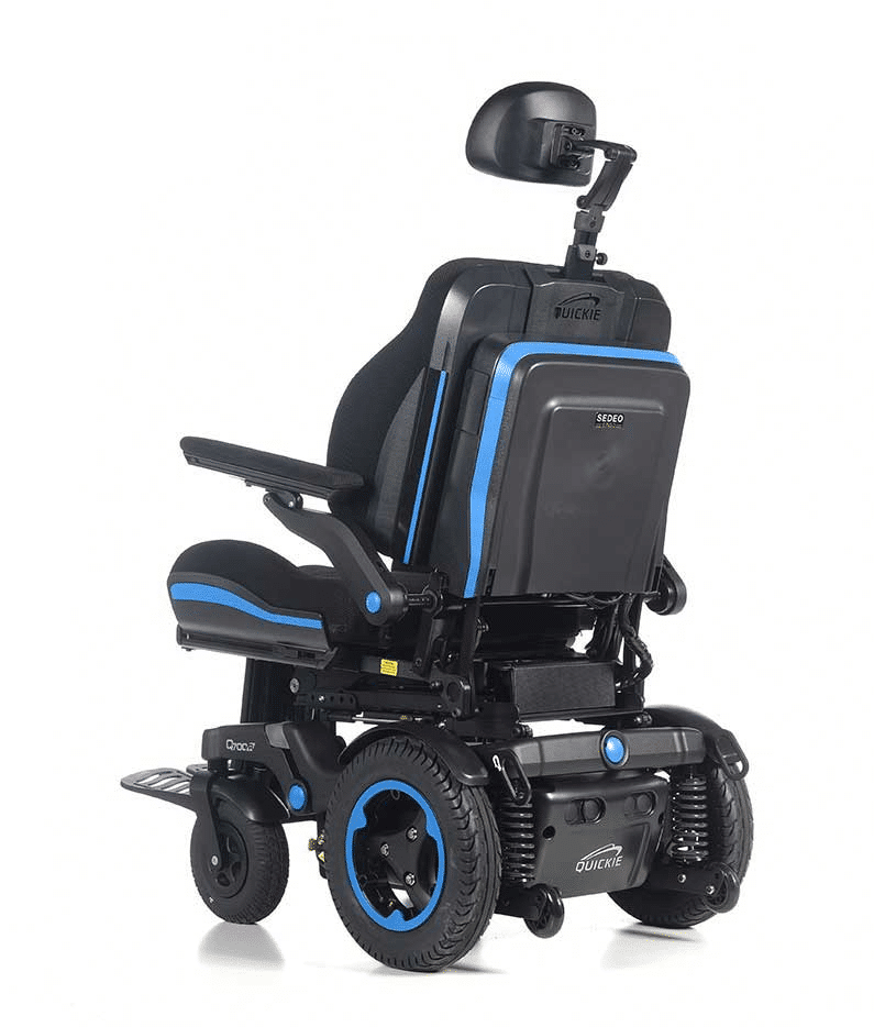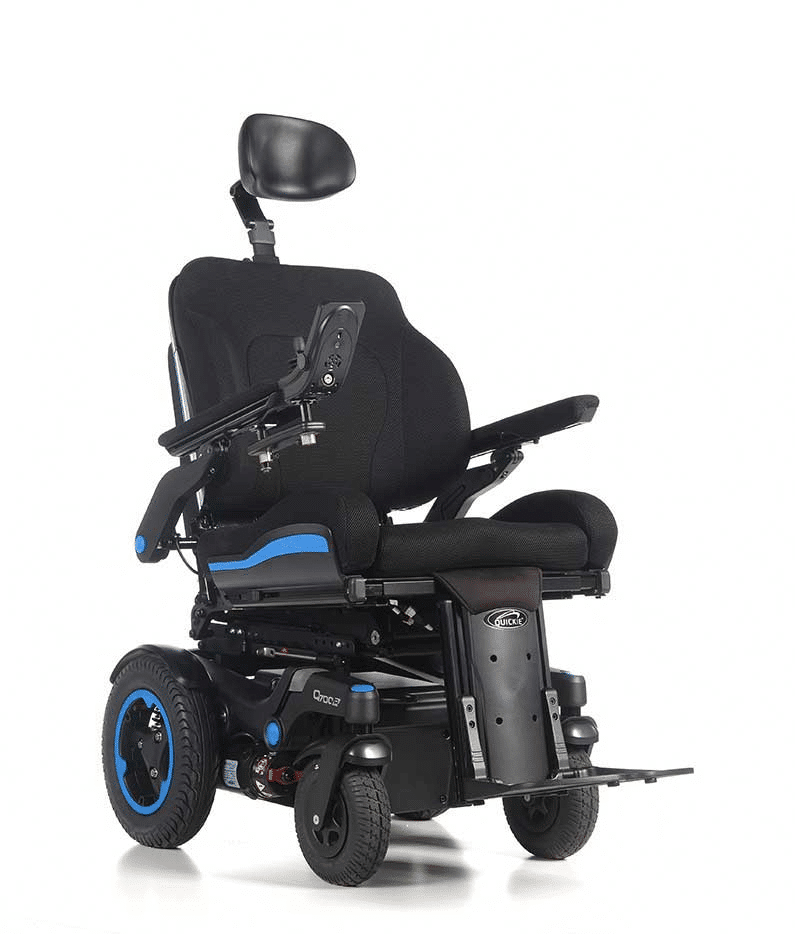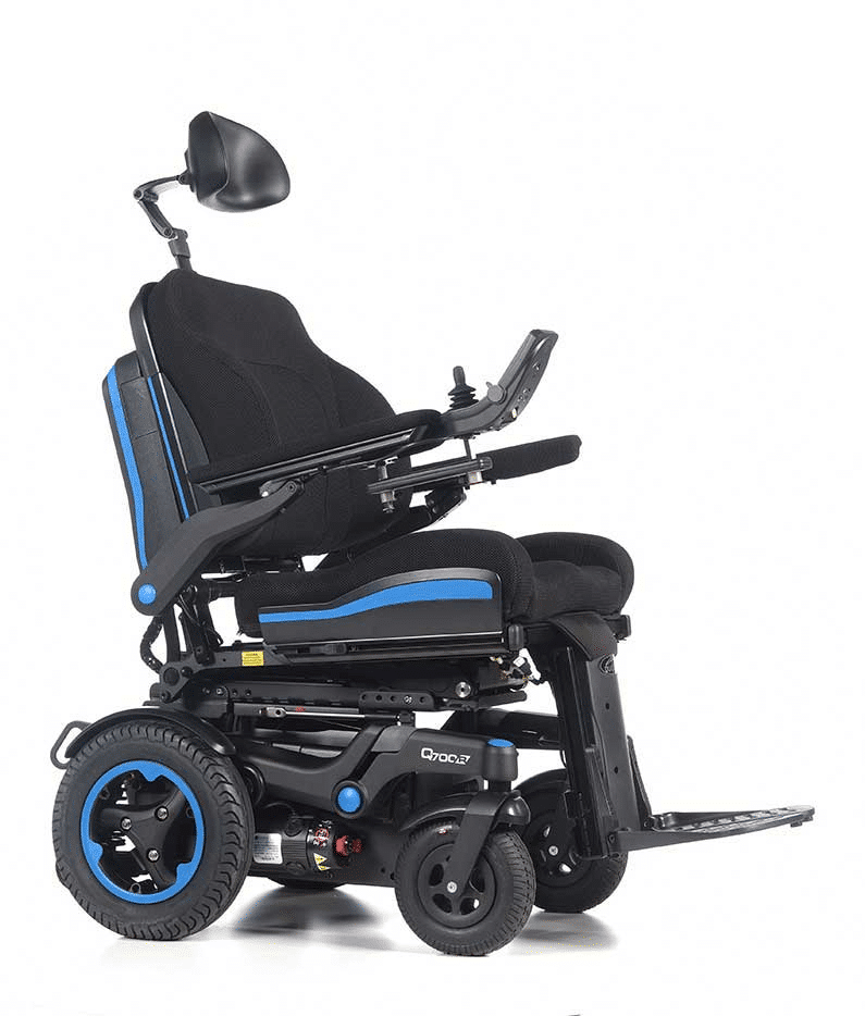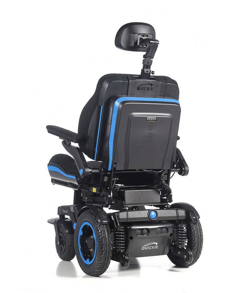 Discover the ultimate driving experience with the striking Q700 R, the high-performance rear-wheel drive power wheelchair. Innovative Spirit Level technology and all-round suspension ensures optimal comfort on all four wheels. It can climb kerbs of up to 100 mm with a kerb climber or 80 mm without it.