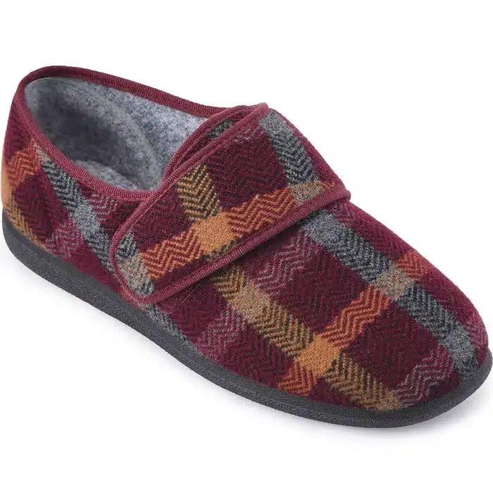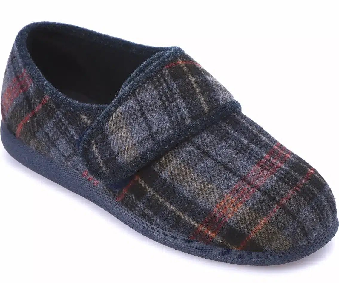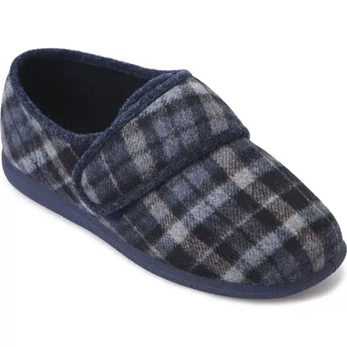 This smart, supportive slipper is cushioned uderfoot for even greater comfort.It adjusts to fit swelling and the front is seam-free and roomy so its great for swollen or sensitive bones.