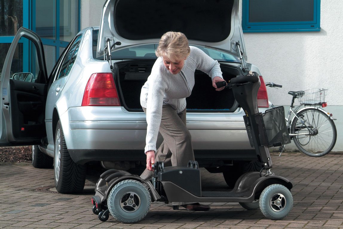 The Sterling 2 is designed for simple disassembly without the hassle of cables or plugs, and the one-touch Sterling lock separates both halves of the mobility scooter for easy portability and storage. Simply lift off the seat, lift out the batteries, and lift the rear STERLING lock handle to separate the front and rear of the mobility scooter. It really is that simple and it goes back together just as smoothly.
