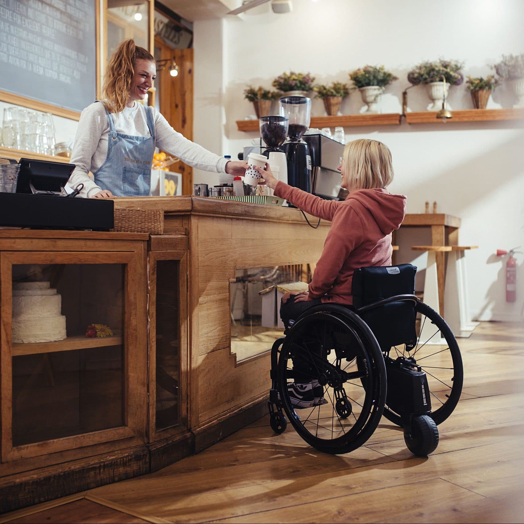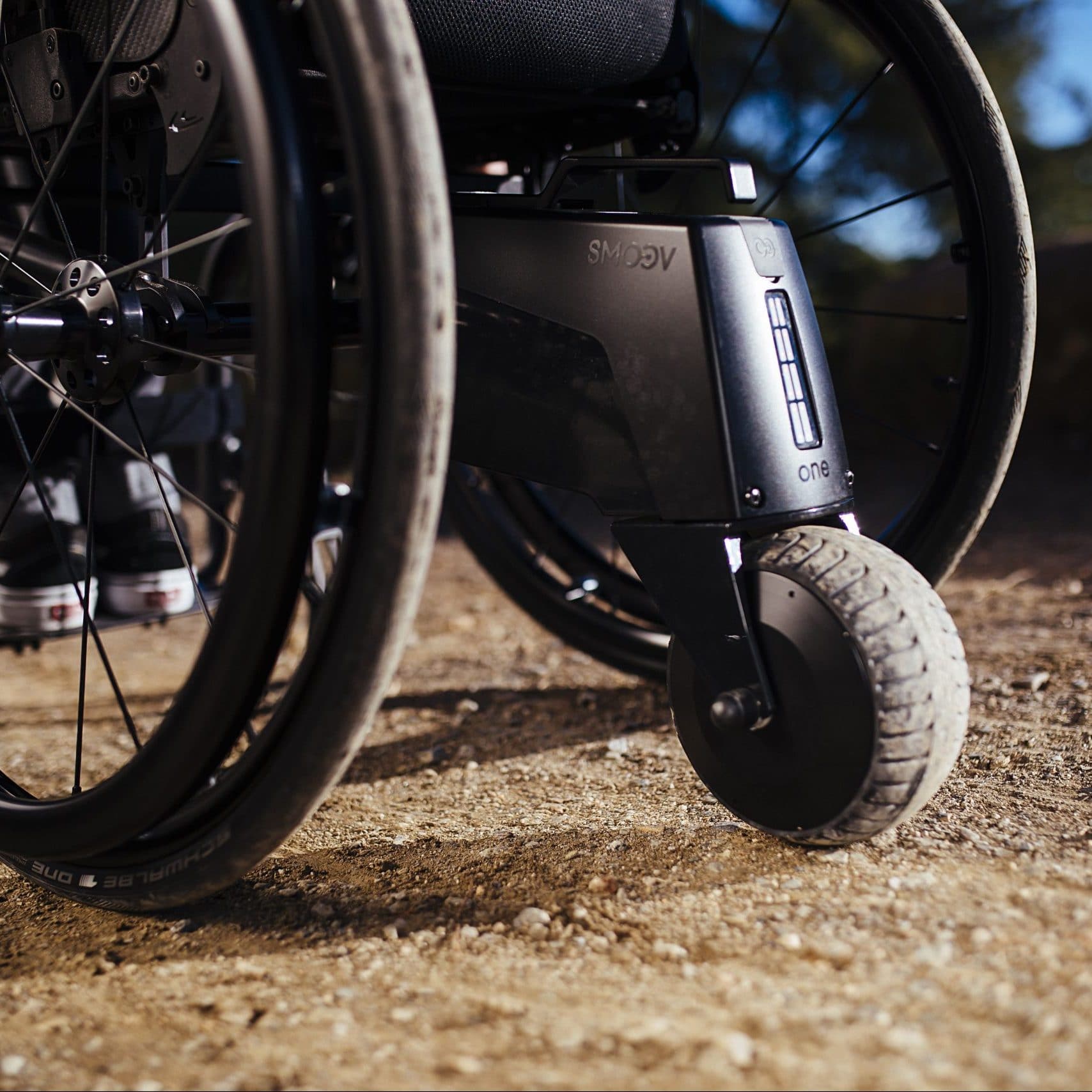 The Smoov One from Invacare is a rear-mounted electric power-assist drive unit for active user chairs. It is specially designed to increase mobility and attaches easily to an active chair.