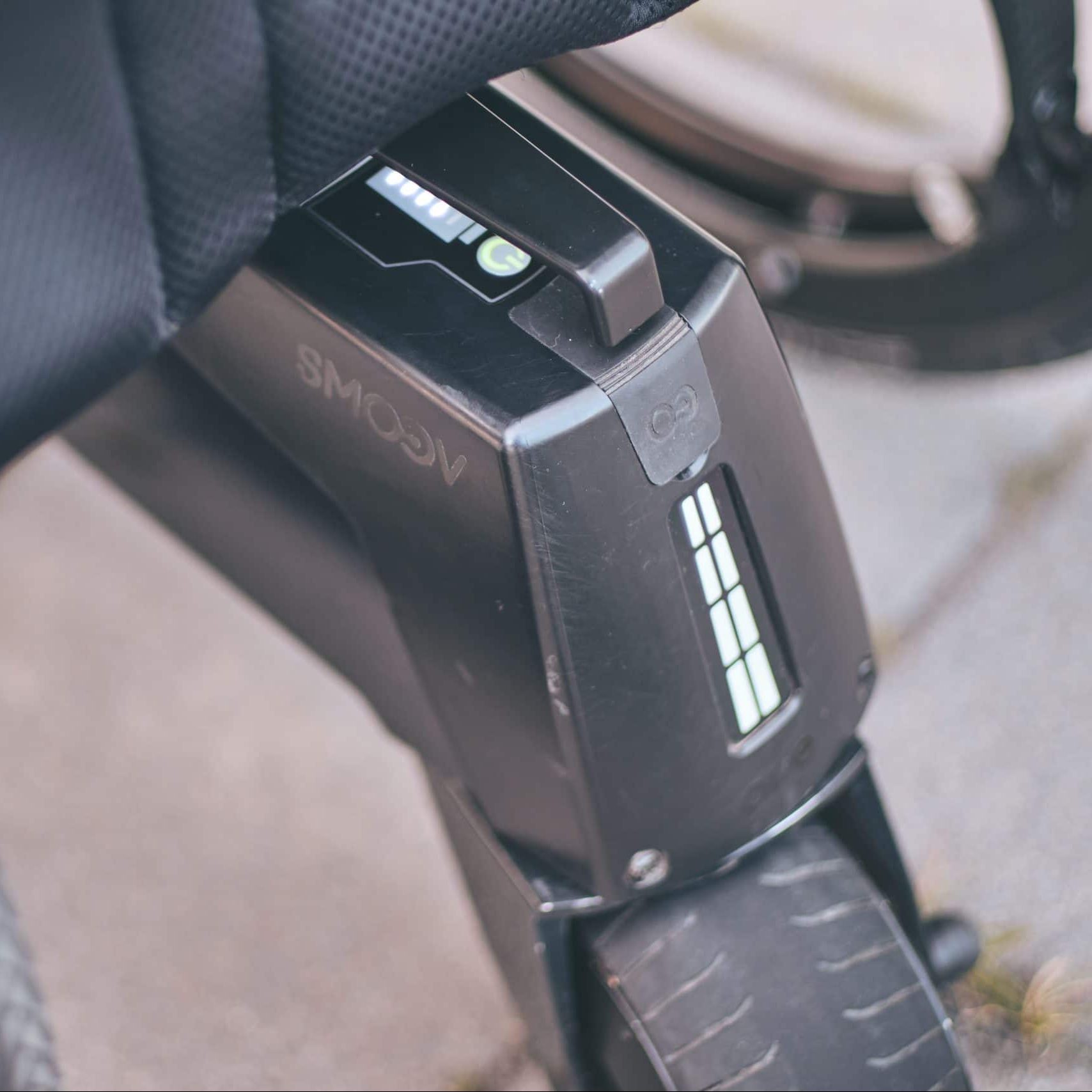 The power add-on is simple to dock and undock, thanks to the releasing device and carrying handle. Users can even detach the Smoov whilst sitting in the chair.