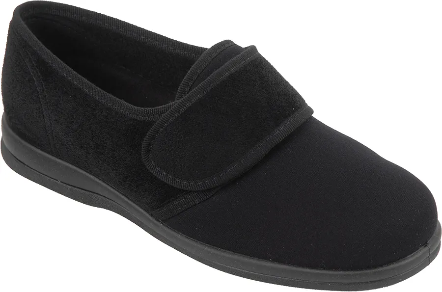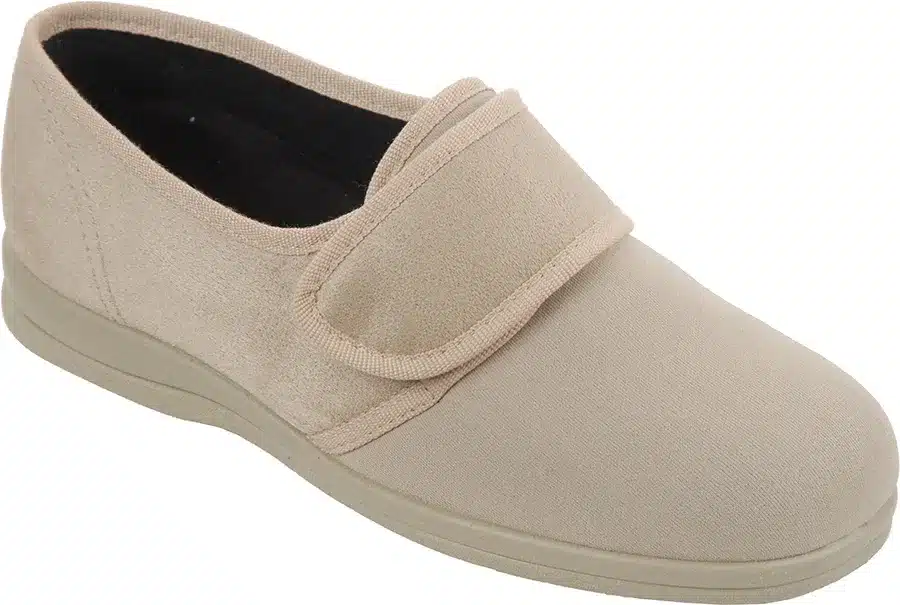 Our neat looking, water resistant house shoe is made from elastane, so it stretches to accommodate bunions,hammer toes, bandaging and swelling with ease.