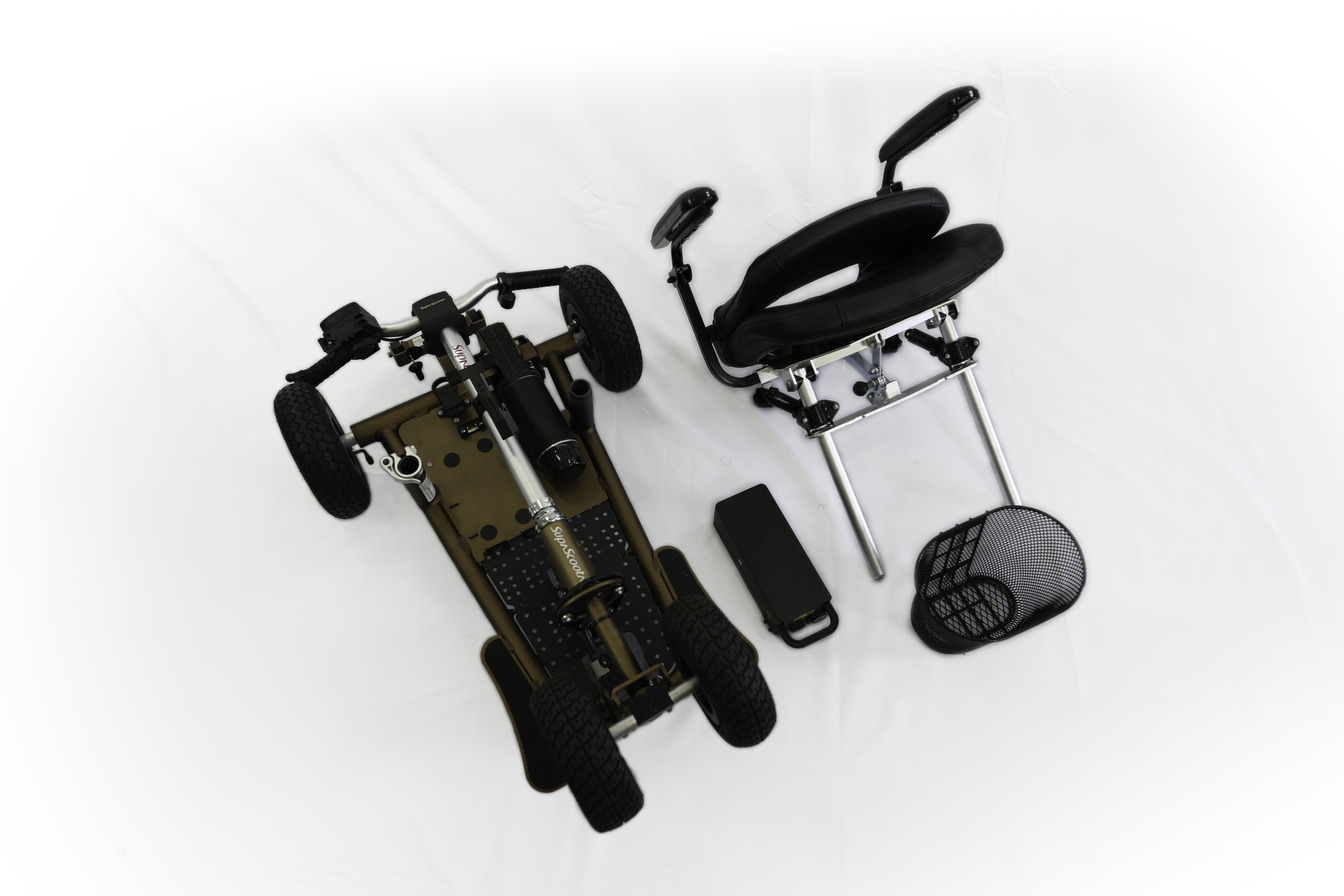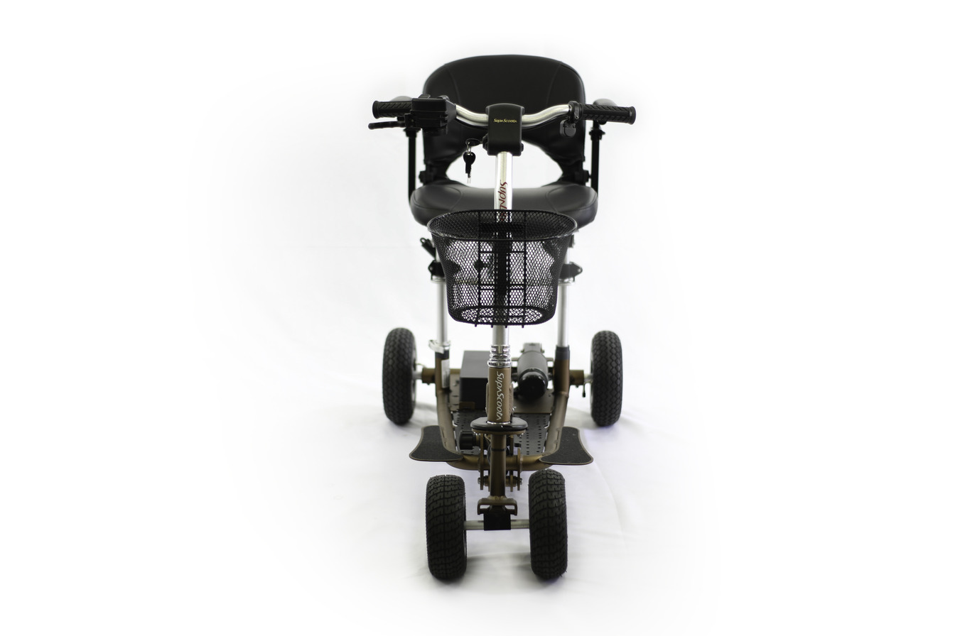 Featuring pneumatic rear wheels, a unique flat-folding seat with detachable armrests, the SupaLite 4 Sport really is a space saver. With close together front wheels, this scooter gives the stability of 4 wheels, but with the manoeuvrability of 3.
