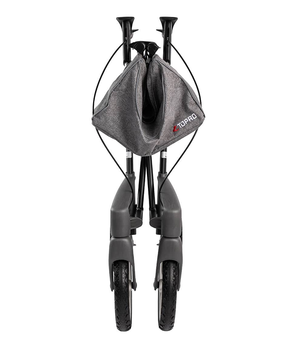 The ergonomic handle (TOPRO Ergo Grip) on the ToPro Troja Olympos offers a flexible grip and comfortable armrests while seated. It also ensures a correct walking posture and safe rising from a sitting position. Together with the soft tyres it provides double shock absorbing effect for stable driving comfort.